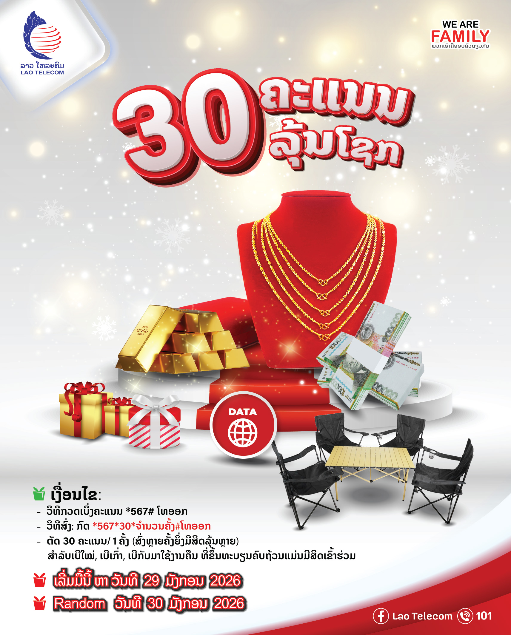 🌟 Random ຜູ້ໂຊກດີ ວັນທີ 30 ມັງກອນ 2026 ຜ່ານຊ່ອງທາງເພຈ Lao Telecom