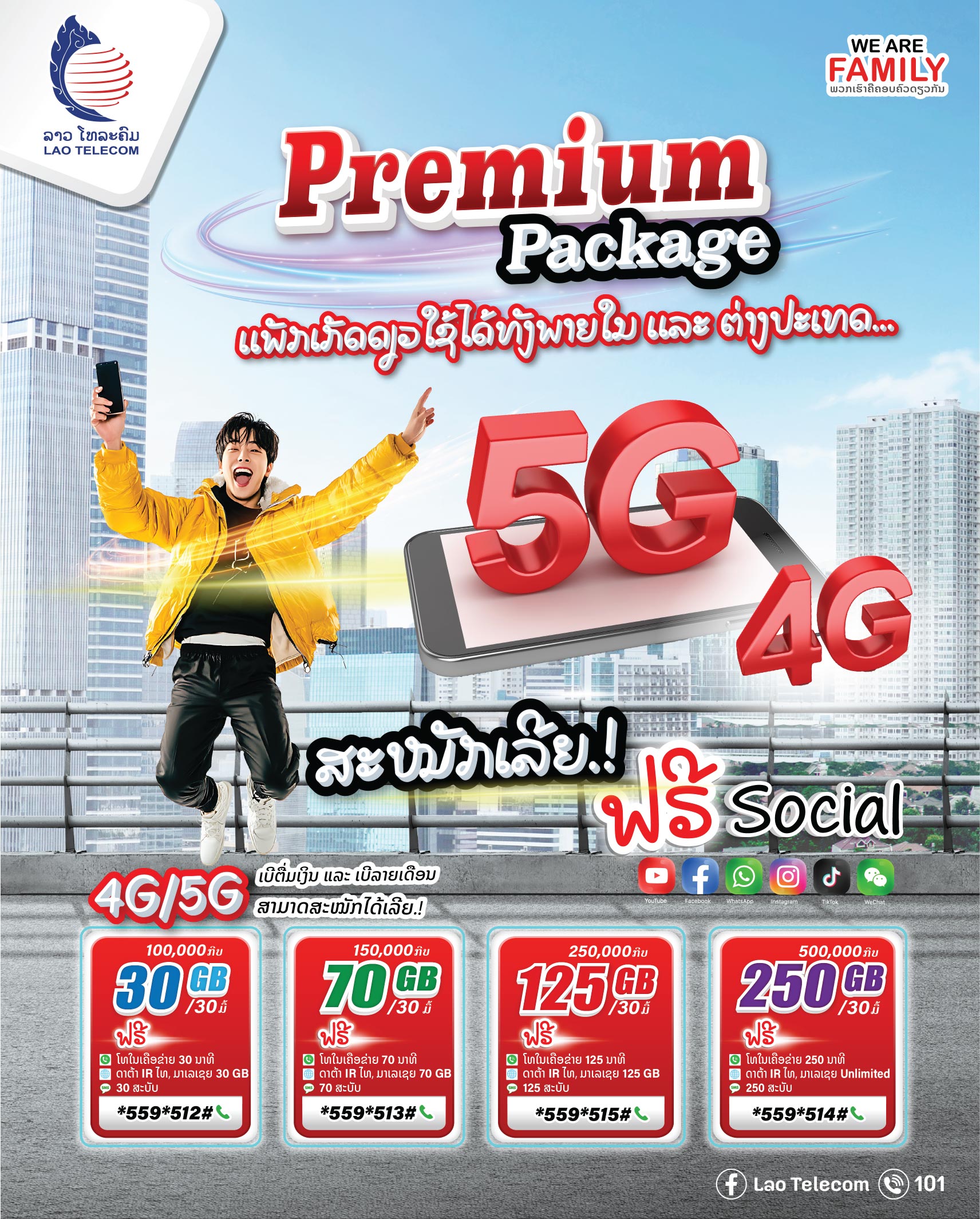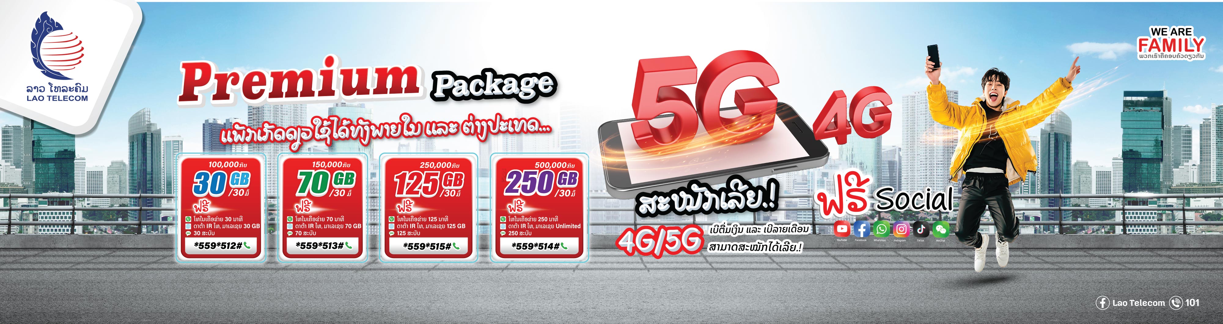 ສະໝັກໄດ້ທັງເບີຕື່ມເງິນ ເເລະ ເບີລາຍເດືອນ 4G/5G