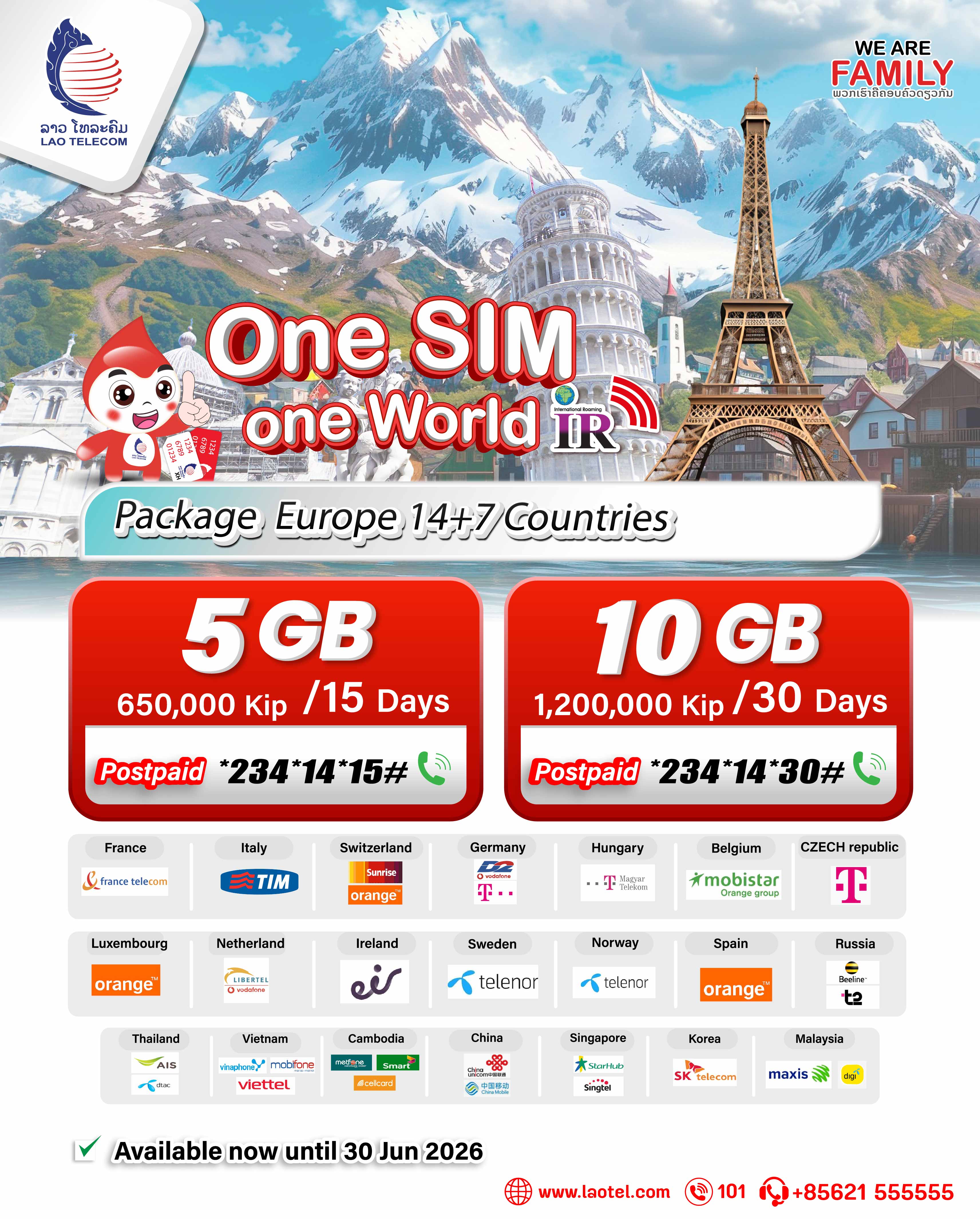 ຊິມດຽວ ທ່ຽວທົ່ວໃຈໄປທົ່ວໂລກ ຫຼື້ນອິນເຕີເນັດ ດ້ວຍບໍລິການ Data Roamong ຈາກ ລາວ ໂທລະຄົມ.